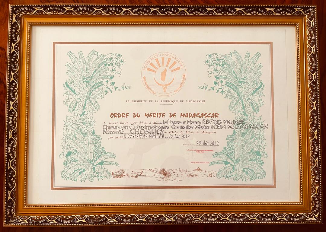 • Knight of the National Order of Merit of the Republic of Madagascar, conferred by the President of Madagascar in 2012.